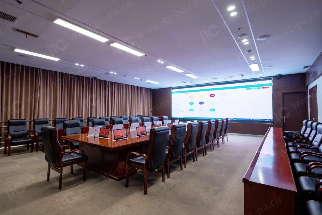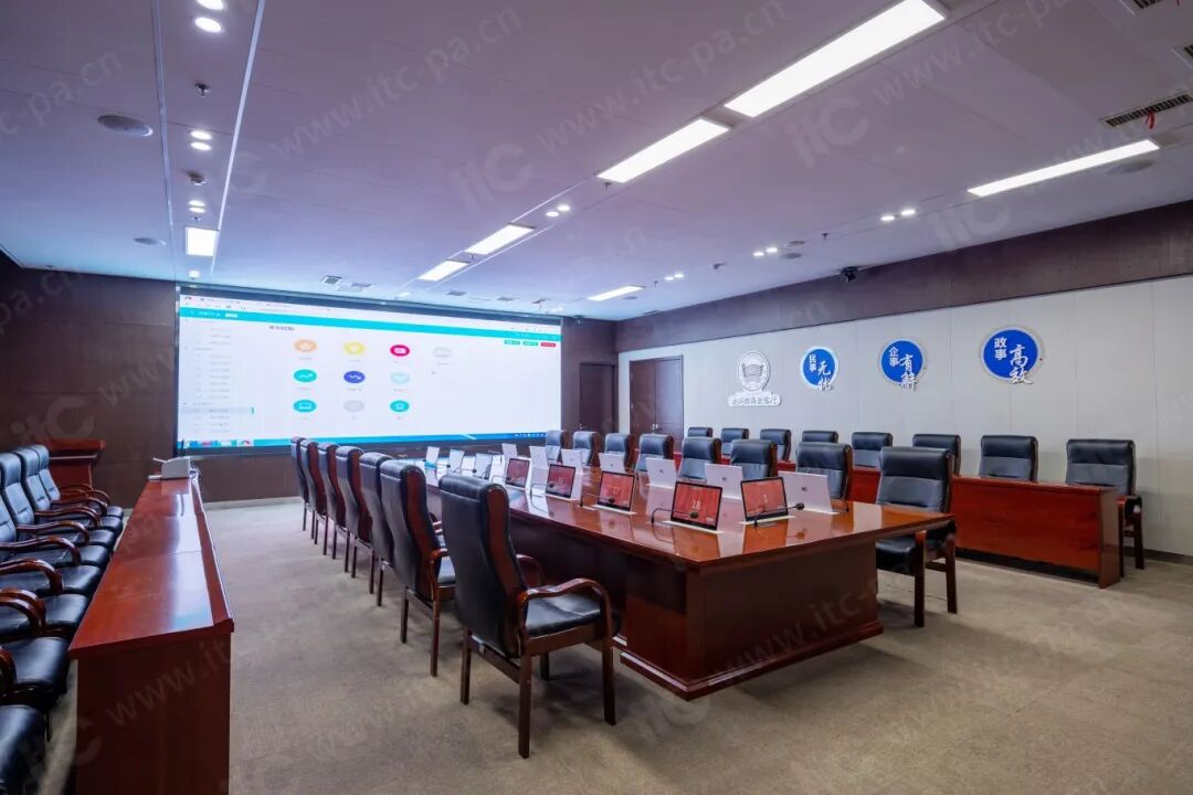 在政務會議流程復雜、技術系統眾多的情況下,傳統的手動控制方式已難以滿足高效運維的需求。為此, itc特別為其會議室部署了中控系統,以一體化控制理念,將會議室內所有核心設備統一接入,通過平板終端即可完成聲、光、電、視訊一鍵管理。中控系統的引入不僅優化了會議組織流程,也大幅降低了會議服務的人力依賴,提高管理部門對會議資源的統籌能力。