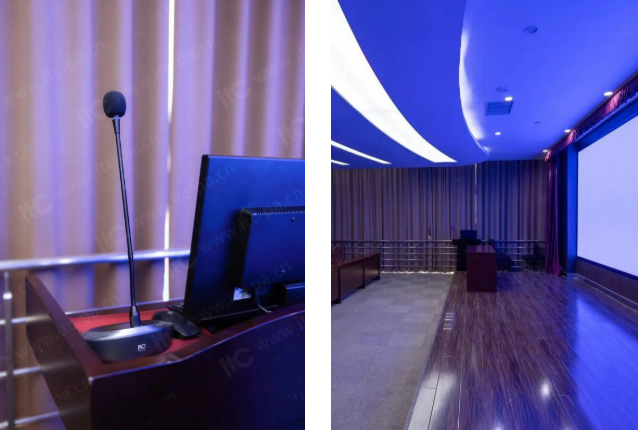 同時搭配 itc數字功放、音頻處理器等周邊設備使用,能夠保證會場內有足夠的聲壓級、聲場分布均勻、語言清晰無失真,使每一位觀眾都能享受到清晰明亮的音質體驗,滿足審批服務中心各類會議報告的擴聲需求。針對會議場景的高效溝通需求, itc還為其會議廳配置了先進的數字會議系統,美觀精致、高端大氣,內置鍍金振膜超心型指向性電容式咪芯,具備廣播級高清音質,抗信號干擾能力強,避免產生噪音和嘯叫,可實現超遠距離拾音,搭配無線手持話筒使用,還可靈活滿足移動發言需求,保障會議全過程順利開展。