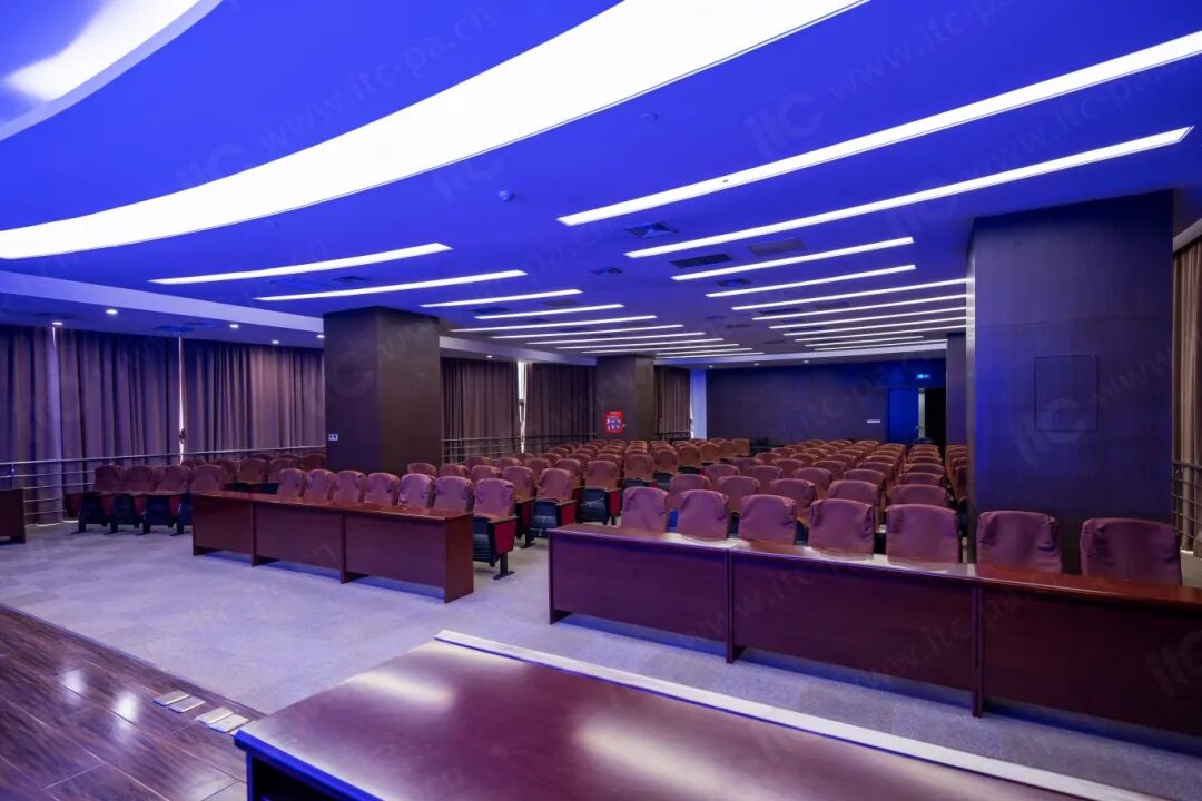 根據會議廳使用頻次高、場景多樣、技術集成度要求高的特點,itc項目團隊結合現場空間結構與功能布局,為其部署了線性音箱作為主擴聲,采用吊裝設計,并嚴格按照聲學標準,精準調整音箱角度、間距,確保聲場覆蓋無死角。該音箱采用線性聲源結構,具有大功率、高靈敏度、投射距離遠、穿透力強等特性,可以提供清晰、細膩、飽滿的擴聲效果。無論是會議報告中的關鍵發言,還是培訓演講的細節闡述,亦或是視頻播放的音效還原,都能呈現出清晰通透、細膩飽滿的聽覺效果,讓每一場會議聲音都能精準傳遞。
